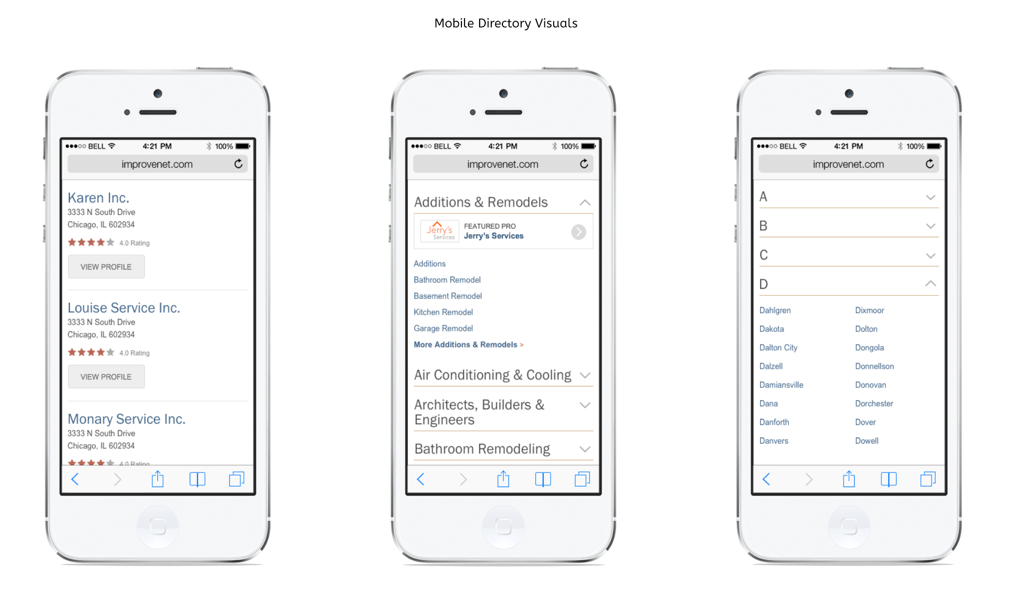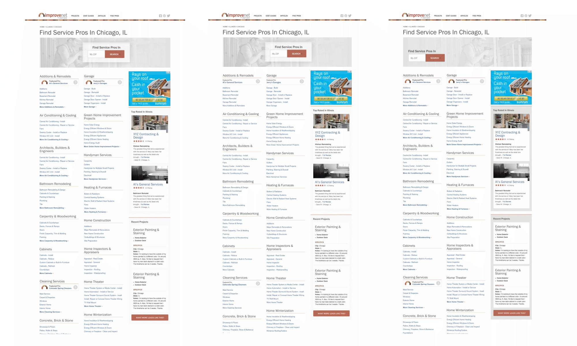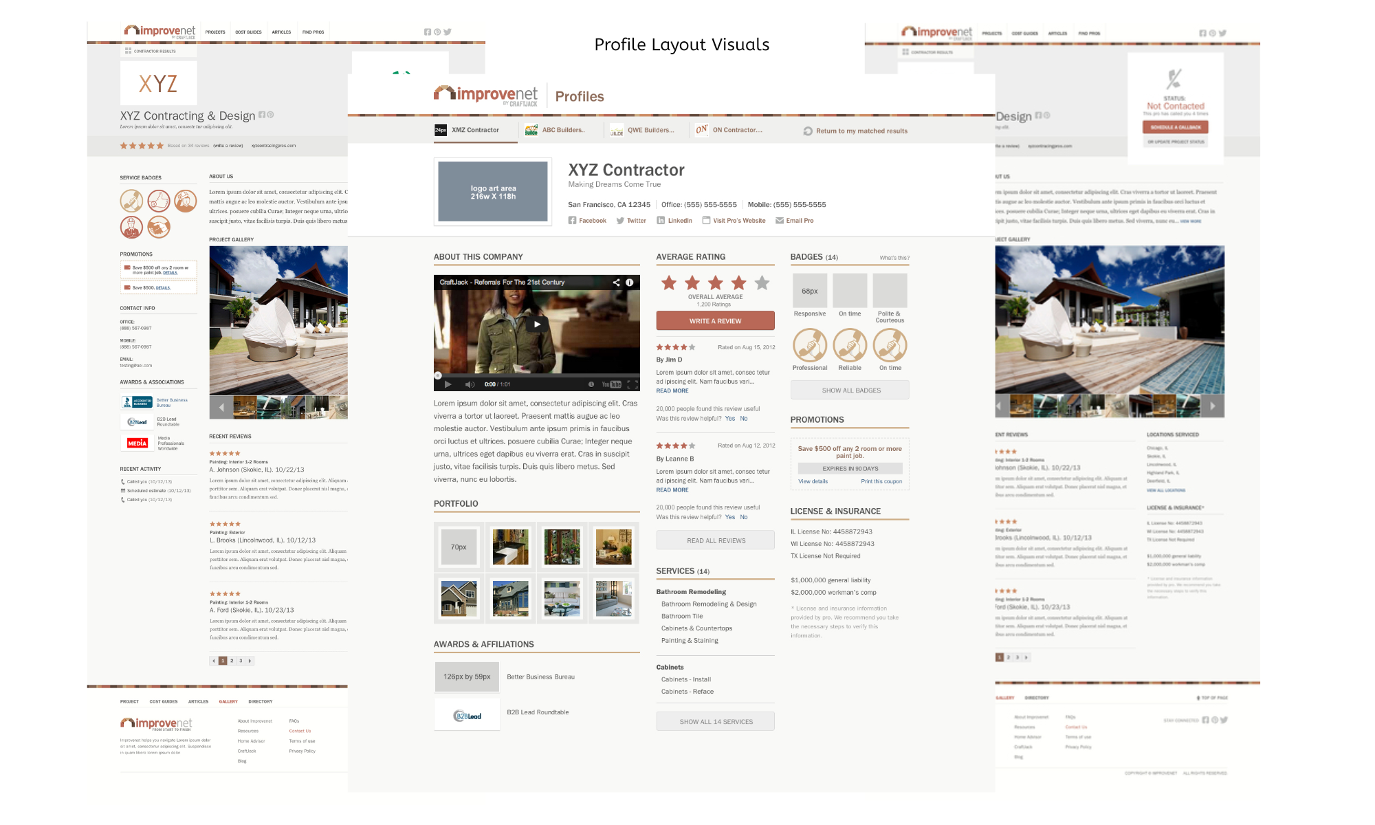 After viewing all of the new information that was being provided by service professionals, it was challenging to display this information in a more accessible way. Users normally try to scan the page quickly for the most useful data so info-architecture and some content strategy techniques were vital to this project. Also trying to layout the proper arrangement for user profiles yielded some challenges on client data and display states.